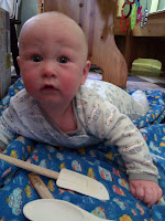 | Henry plays on his splash mat while I prepare a meal. |