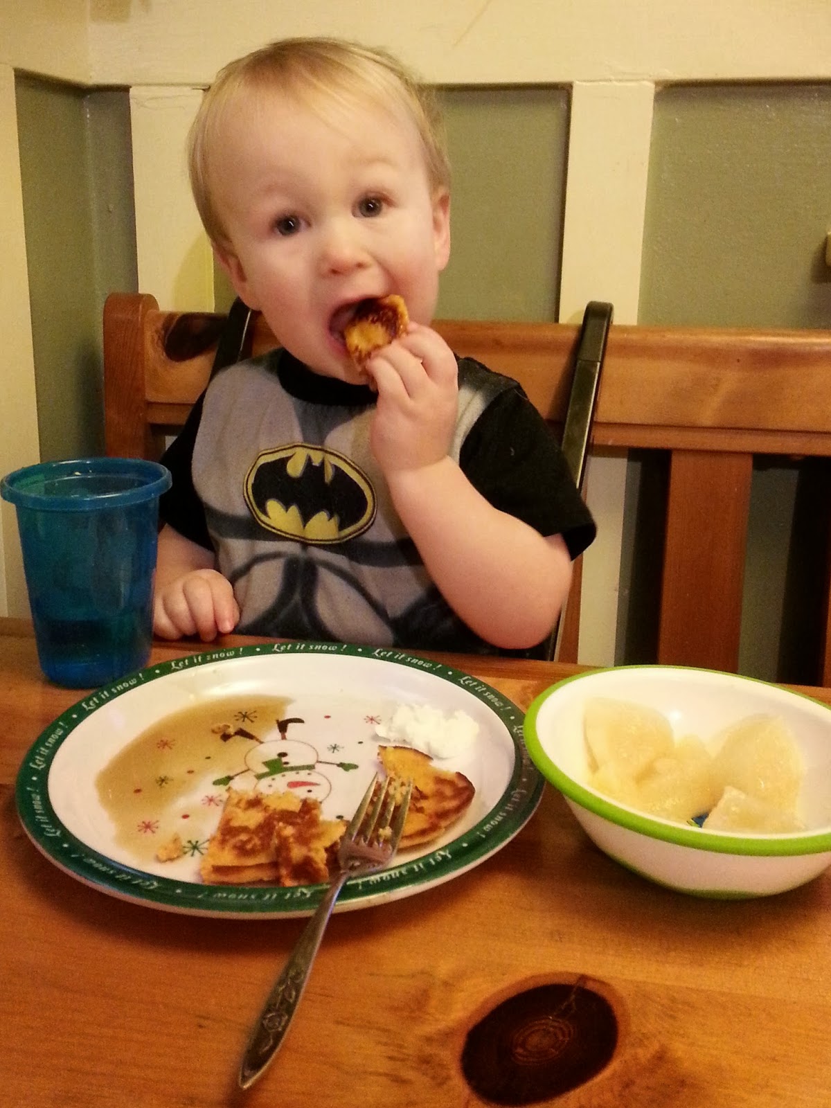 - 2-year old: Putting any leftover pancakes into a resealable freezer bag.